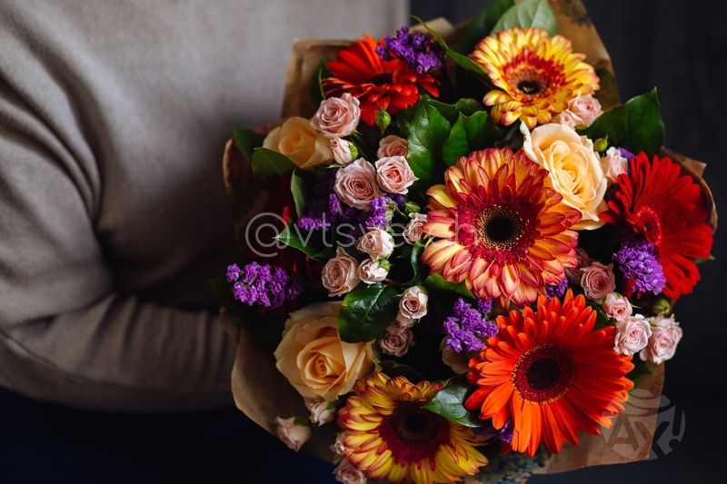- Смешайте разные виды цветов. Букет роз с хризантемами или альстромериями создаст интересную и разнообразную композицию.