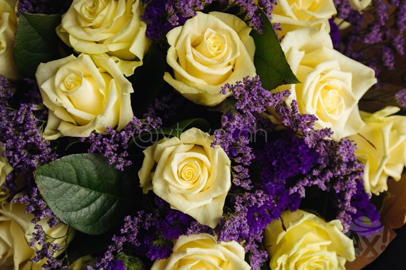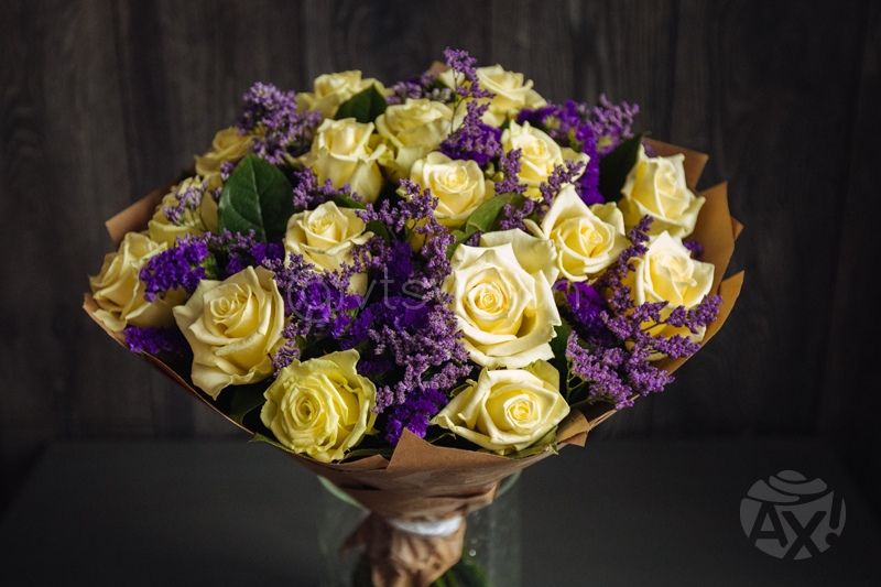 Основной состав: Роза, салал, лимониум, статица.