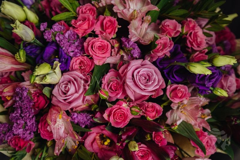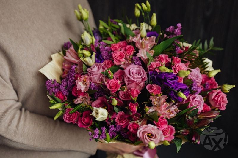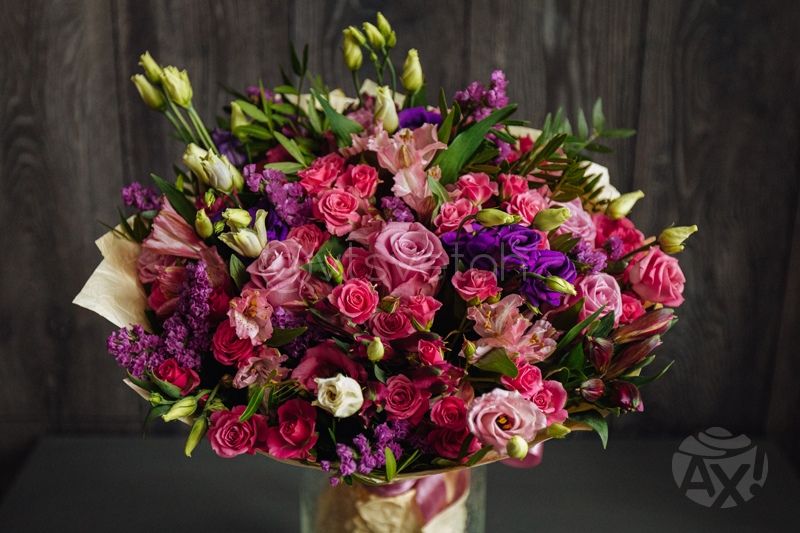 Основной состав: Роза, эустома, альстромерия, пистация, статица.