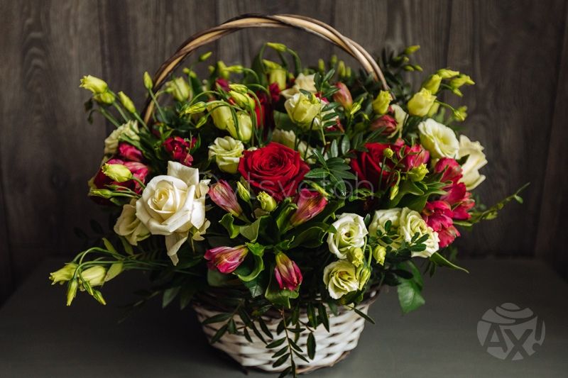 Основной состав: Роза, пистация, эустома, альстромерия.